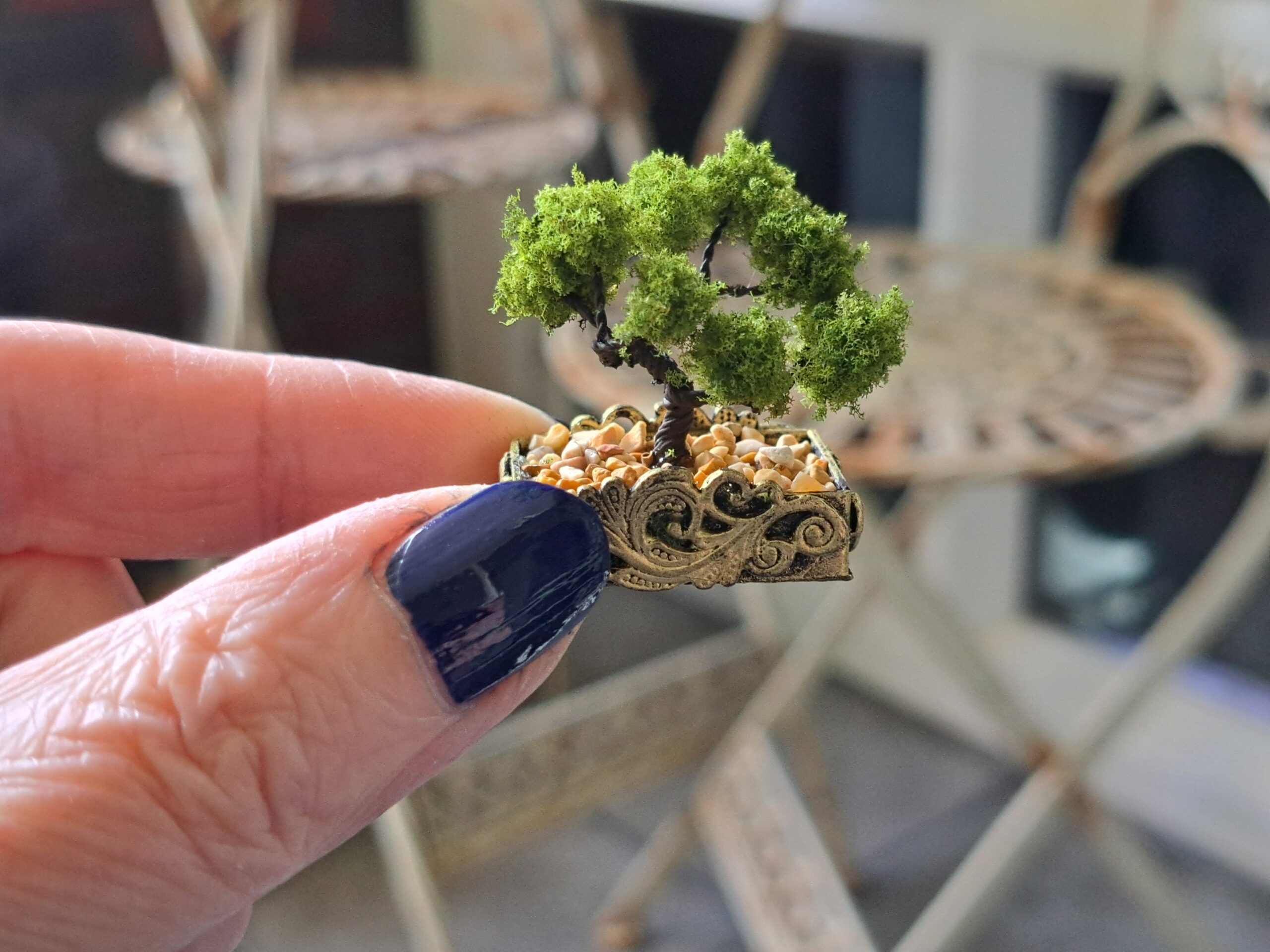 Miniatuur bonsai boompje, hoogte 3cm, schaal 1:12.