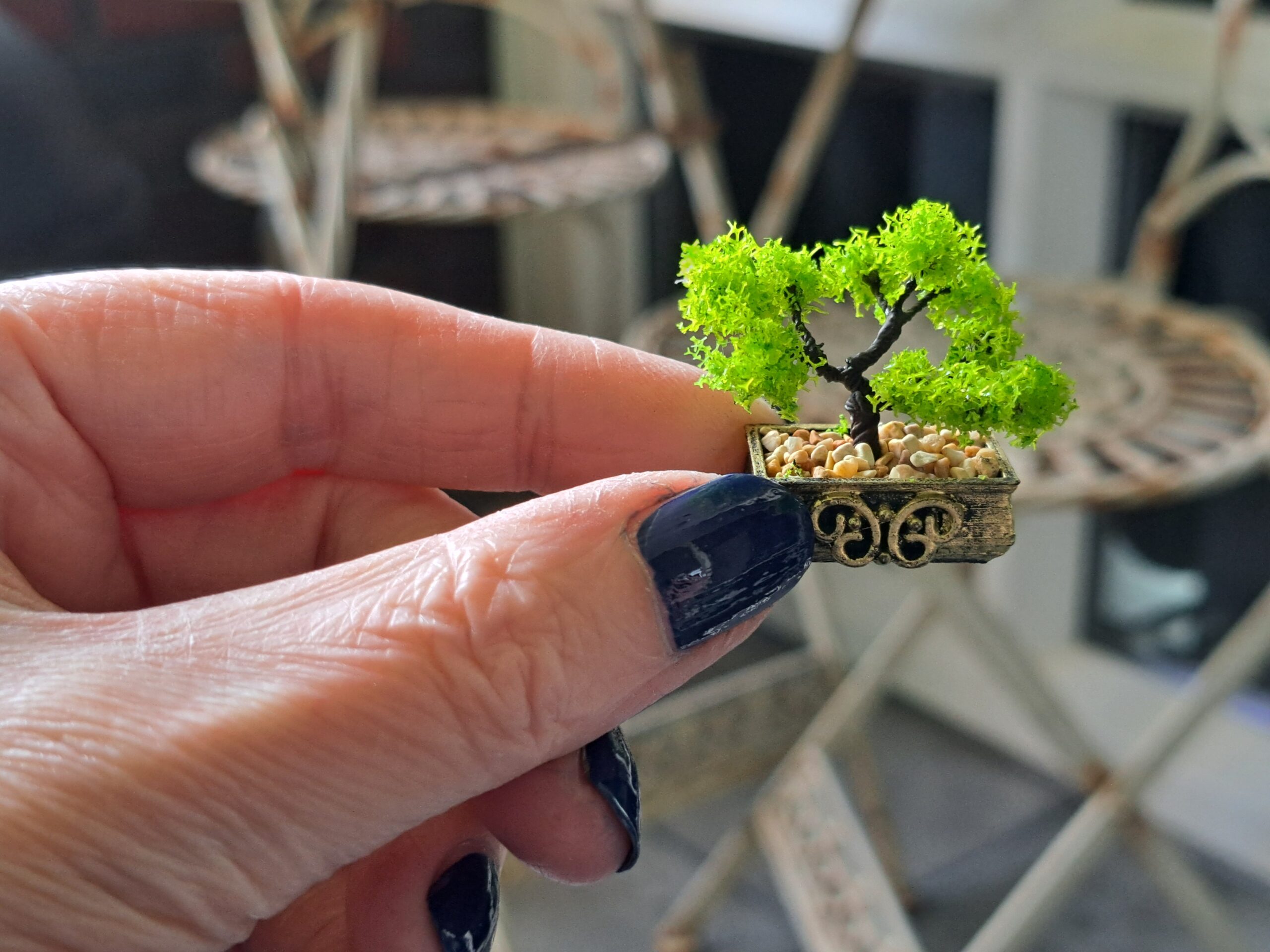 Miniatuur bonsai boompje, hoogte 3cm, schaal 1:12.