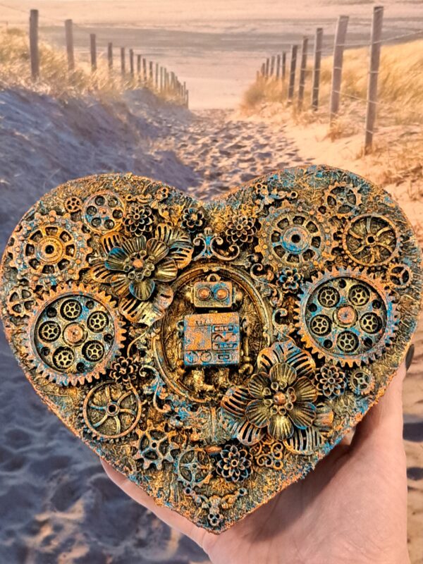 Steampunk fantasy juwelenkistje, lengte 17.5cm, hoogte 5.5cm.